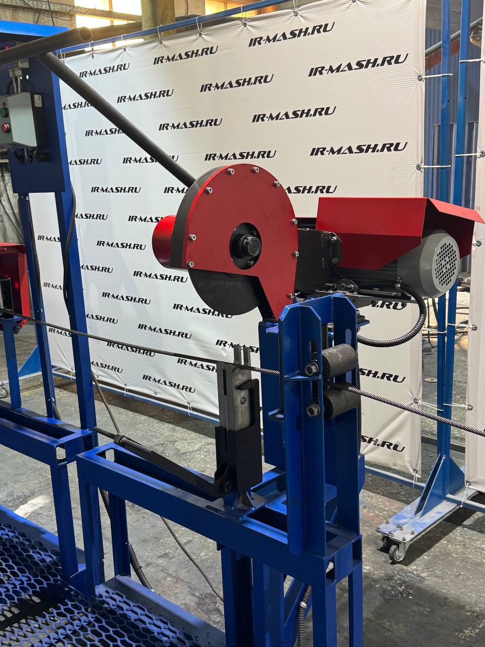 Комплекс для вертикальной перемотки стального каната ВПК-36 предназначен для выполнения операций по перемотке стального каната с отдающего барабана на принимающий с функцией измерения длины и резки.