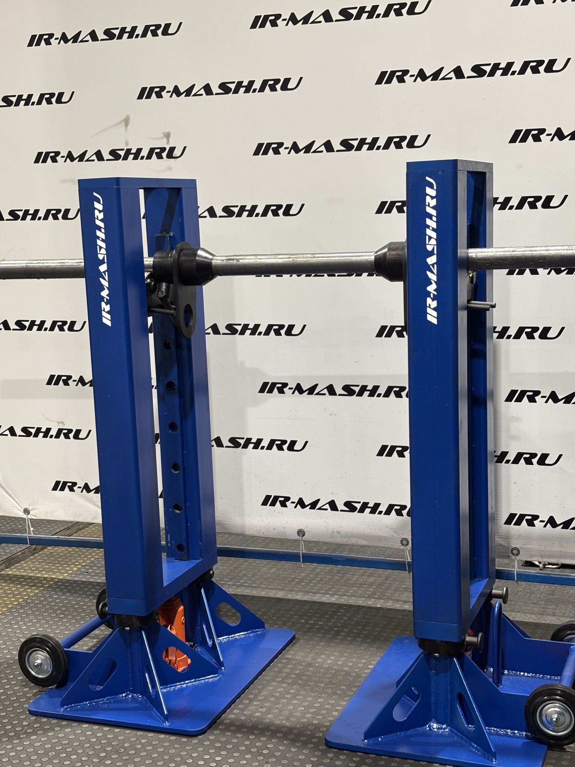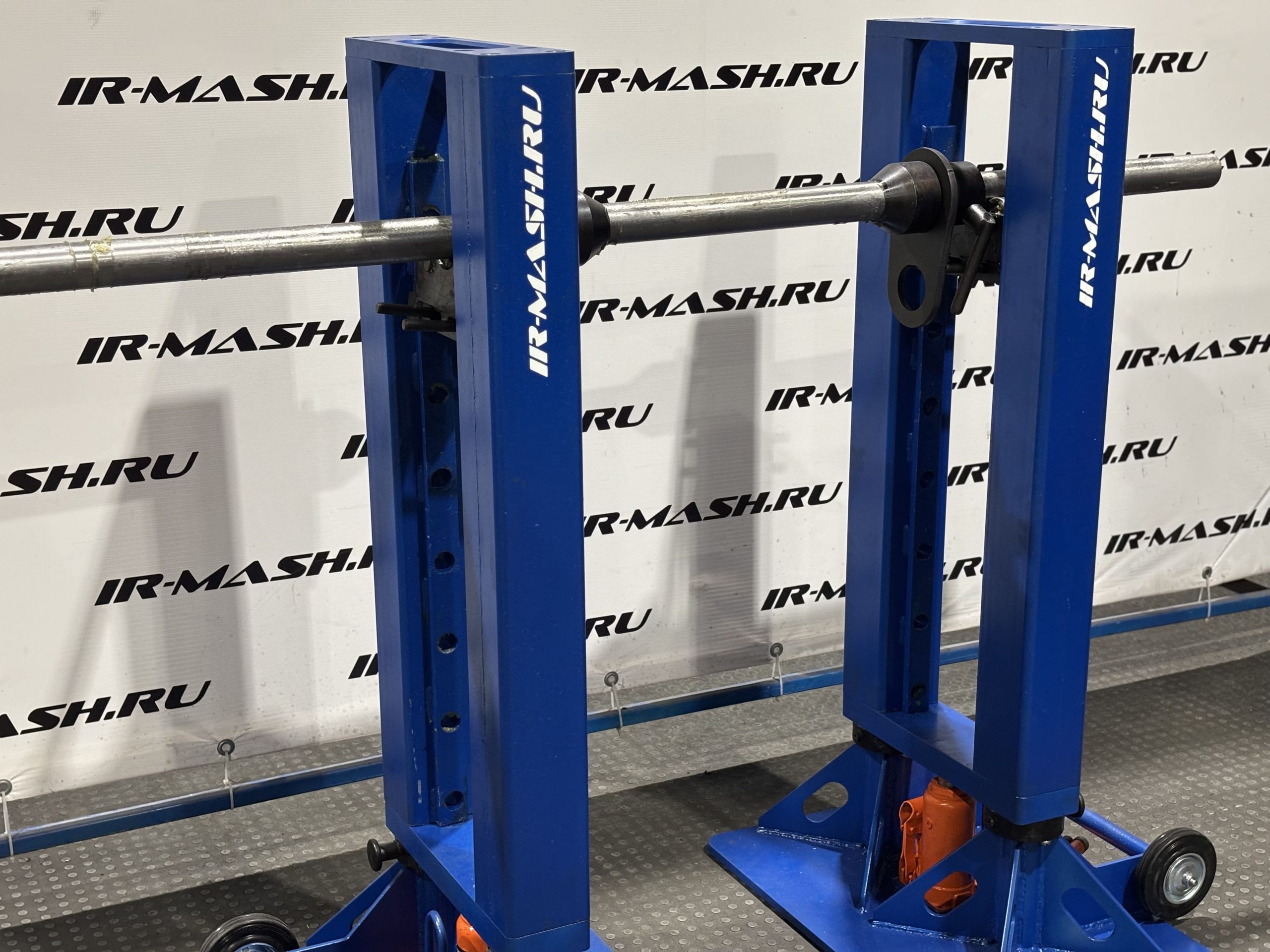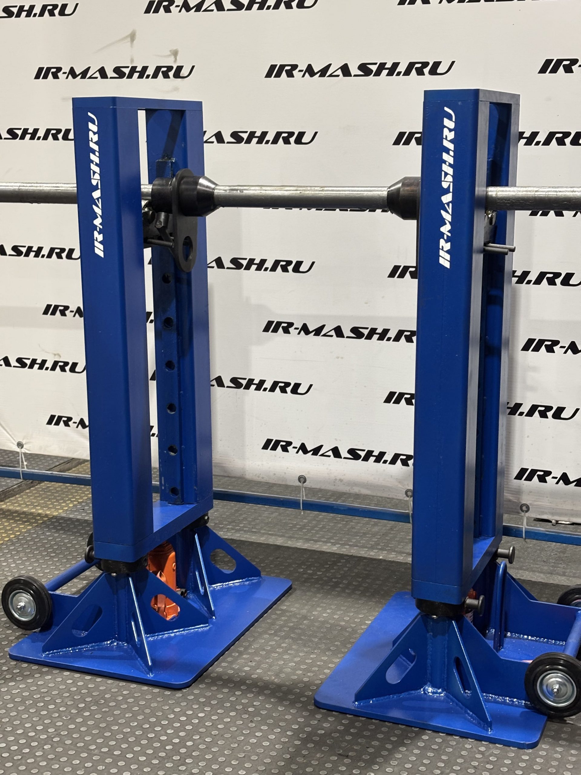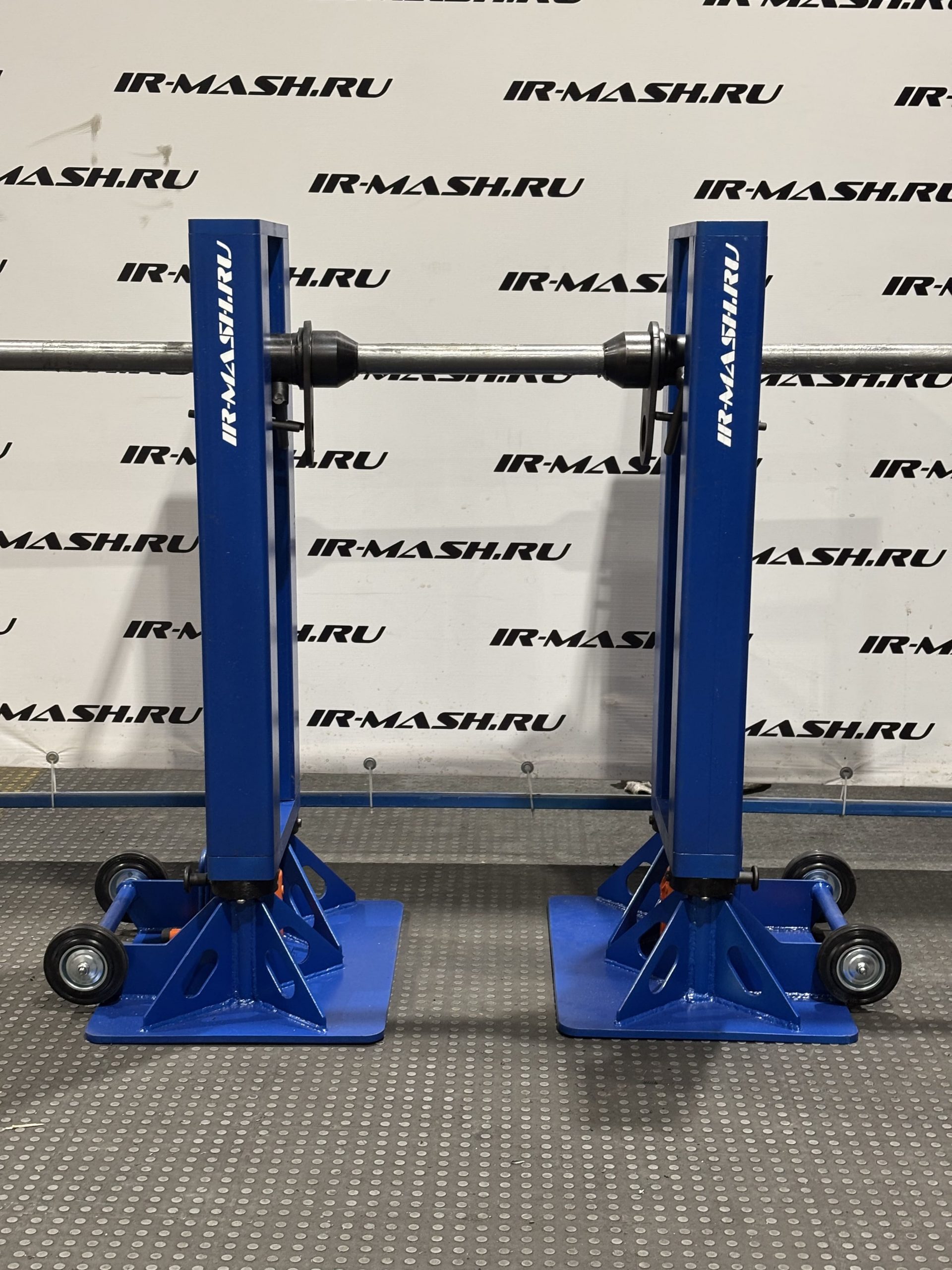 Комплект включает две одинаковые грузоподъёмные стойки с опорными траверсами, на которые устанавливается барабан с канатом. В отверстие барабана предварительно вставляется опорная ось. Имеет шесть фиксированных положений по высоте – под разные диаметры барабанов.