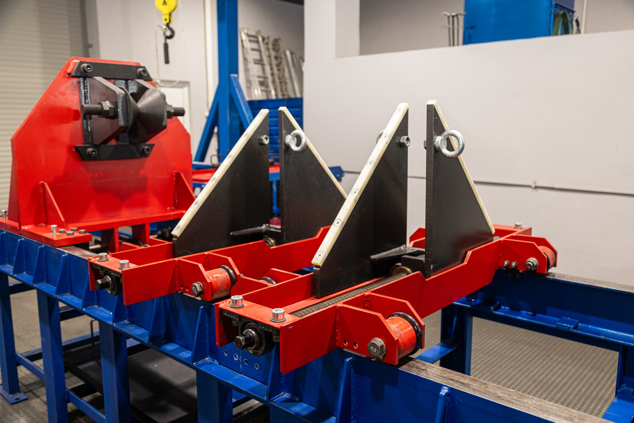 Стенд оборудован системами фиксации и центрирования, предотвращающими деформацию деталей при обслуживании. Для обеспечения безопасной эксплуатации предусмотрены механизмы защиты при аварийных ситуациях.